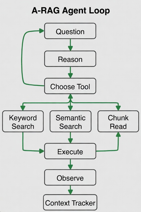 Hình 3: Flowchart vòng lặp Agent trong A-RAG.