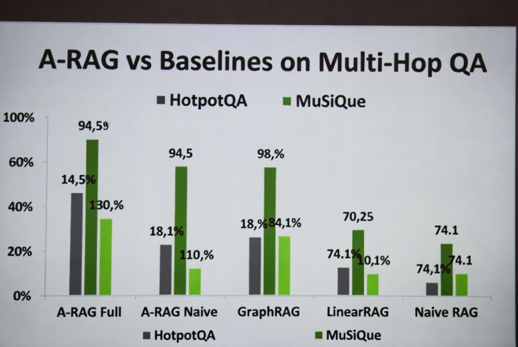 Tóm lại, A-RAG không chỉ là cải tiến kỹ thuật mà là sự chuyển dịch từ RAG “thụ động” sang RAG “tác nhân” thực sự, mở ra khả năng scale hiệu quả cùng sự tiến bộ của LLM.