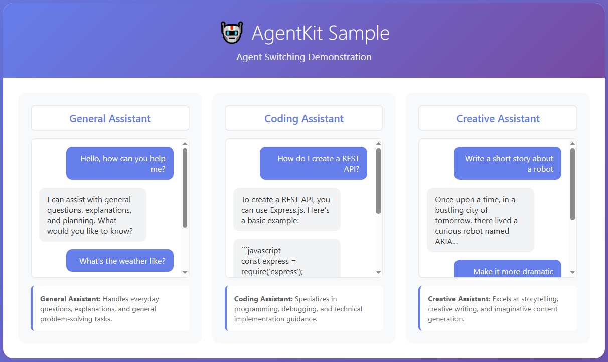 • ChatKit: Pre-built chat interfaces and conversation management
