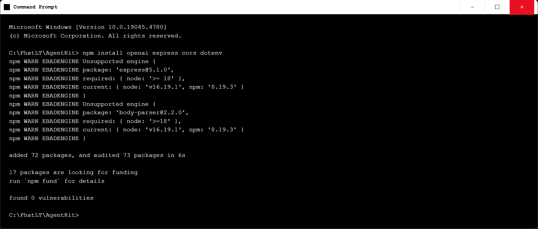 • Cần Node 22+ (phiên bản cũ sẽ lỗi).