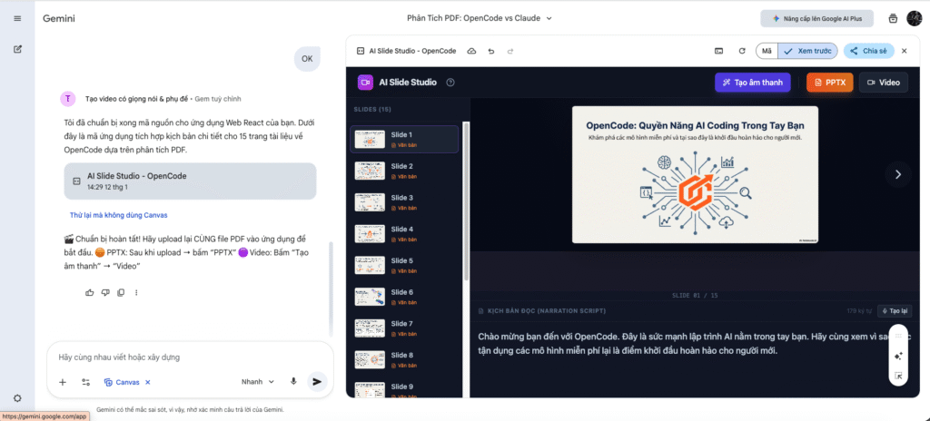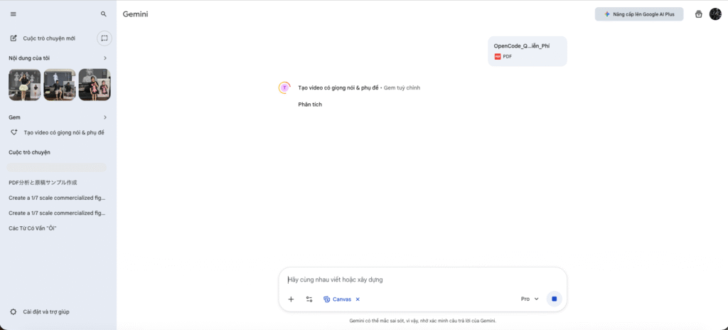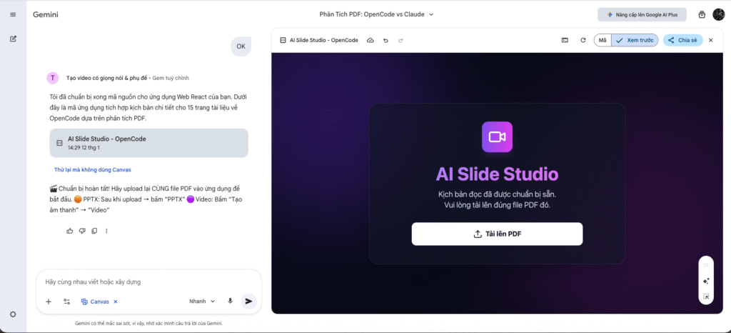 - Upload PDF vào Gemini Canvas