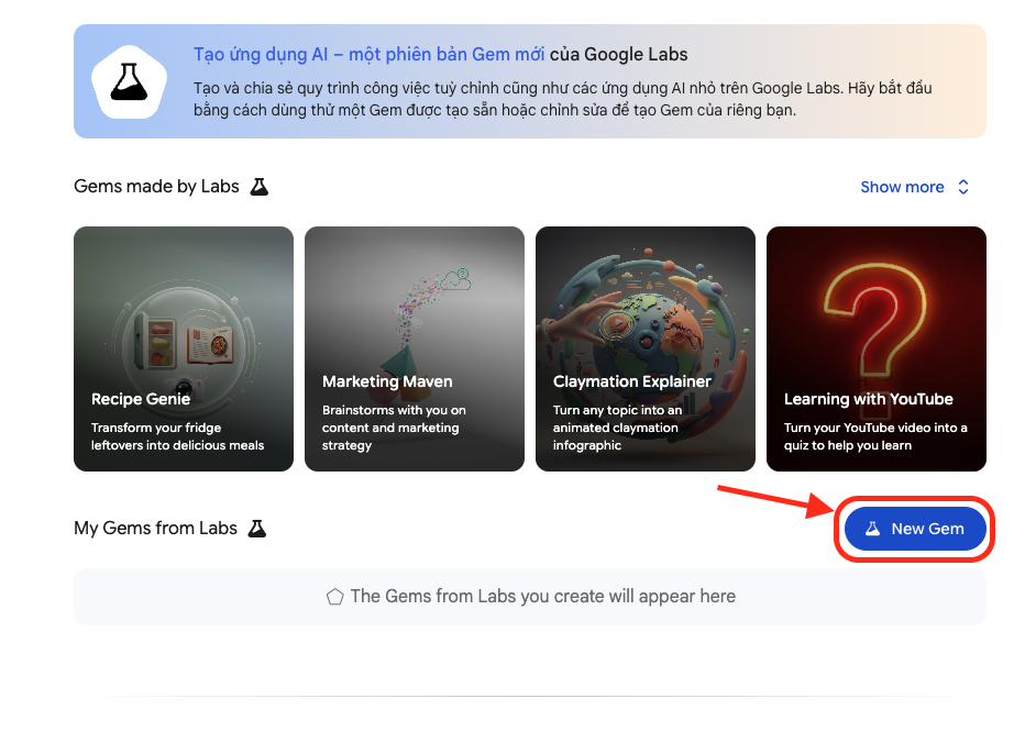 Bước 2: Tạo Gem trong Gemini