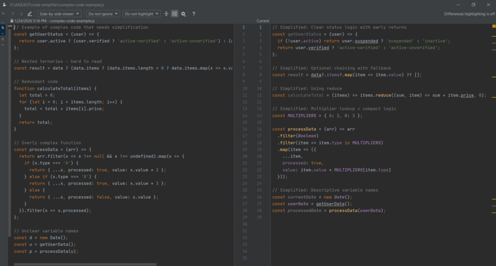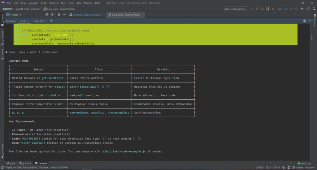 Trong bài viết này, chúng ta sẽ cùng tìm hiểu chi tiết về các tính năng của code-simplifier, cách cài đặt và sử dụng, cũng như những kinh nghiệm thực tế khi áp dụng vào dự án.