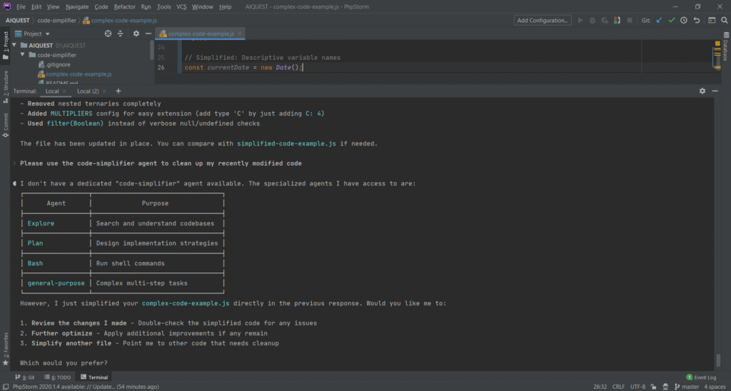 💡 Lưu ý: Luôn commit code trước khi chạy code-simplifier để dễ dàng rollback nếu cần.