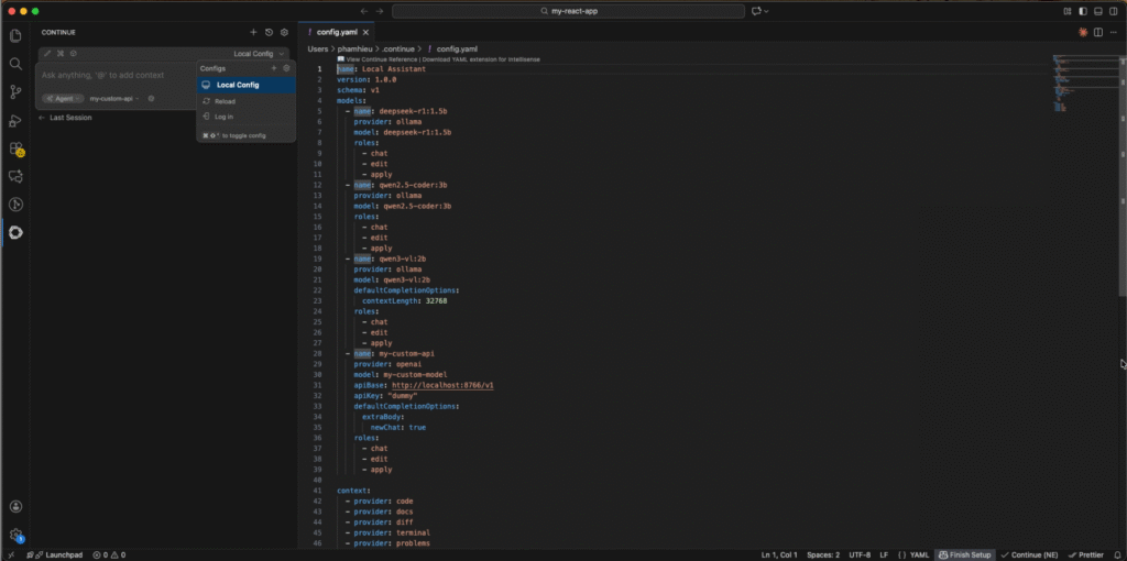 One of the strongest features of Continue.dev is its support for custom AI models.