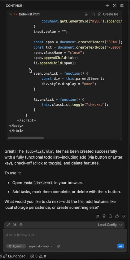 todo-list.htmlfile was generated - Features included adding, completing, and deleting tasks