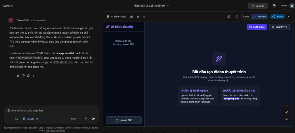 - Upload PDF vào Gemini Canvas