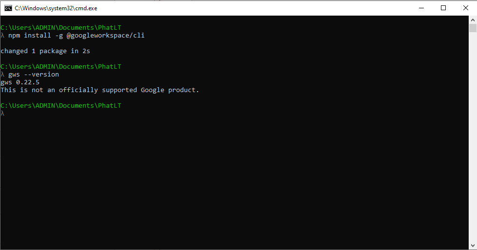 npm install -g @googleworkspace/cli