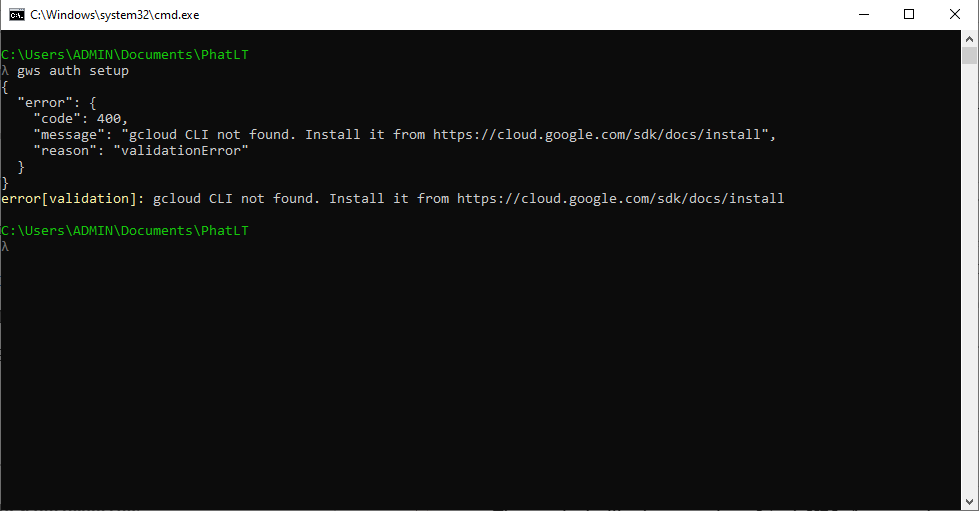 gcloud CLI Is Not Installed: If you receive the following JSON error: “gcloud CLI not found. Install it from https://cloud.google.com/sdk/docs/install” — this happens because gws auth setup defaults to using gcloud for credential management.