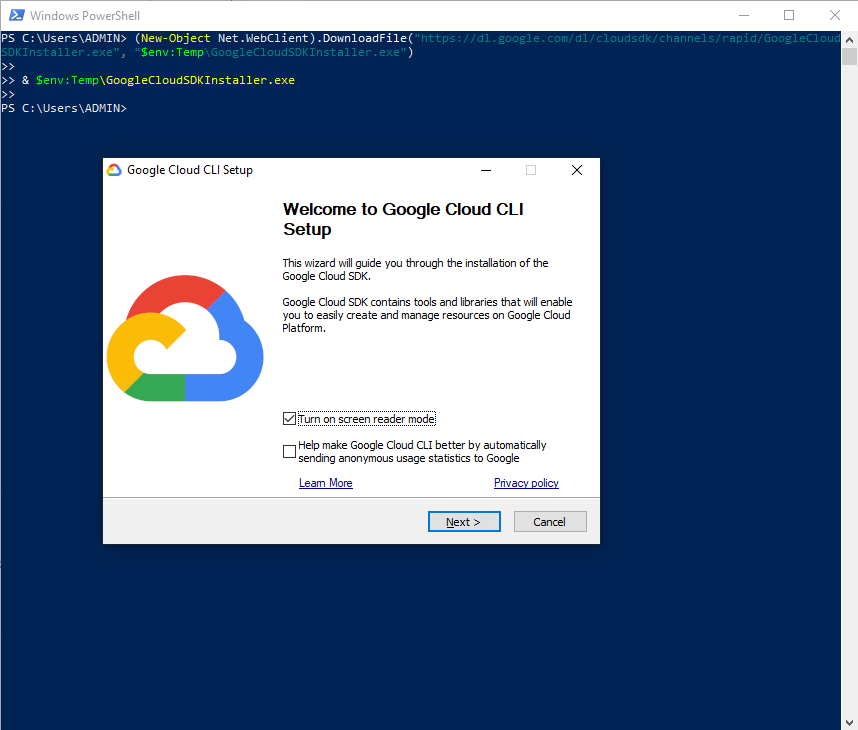 - Download the Google Cloud SDK from: cloud.google.com/sdk/docs/install