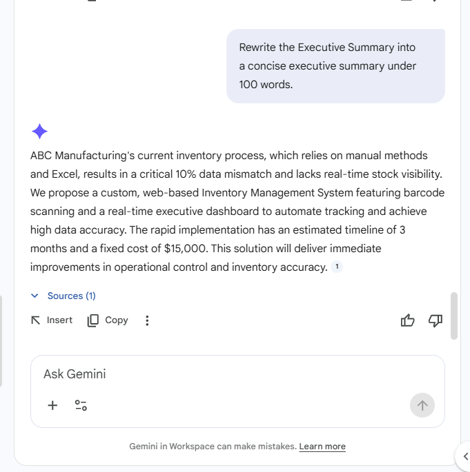 Most of us start with messy notes — scattered ideas, half-written bullets, and unclear structure. I wanted to see if Gemini in Google Docs could turn that into a real, client-ready proposal.