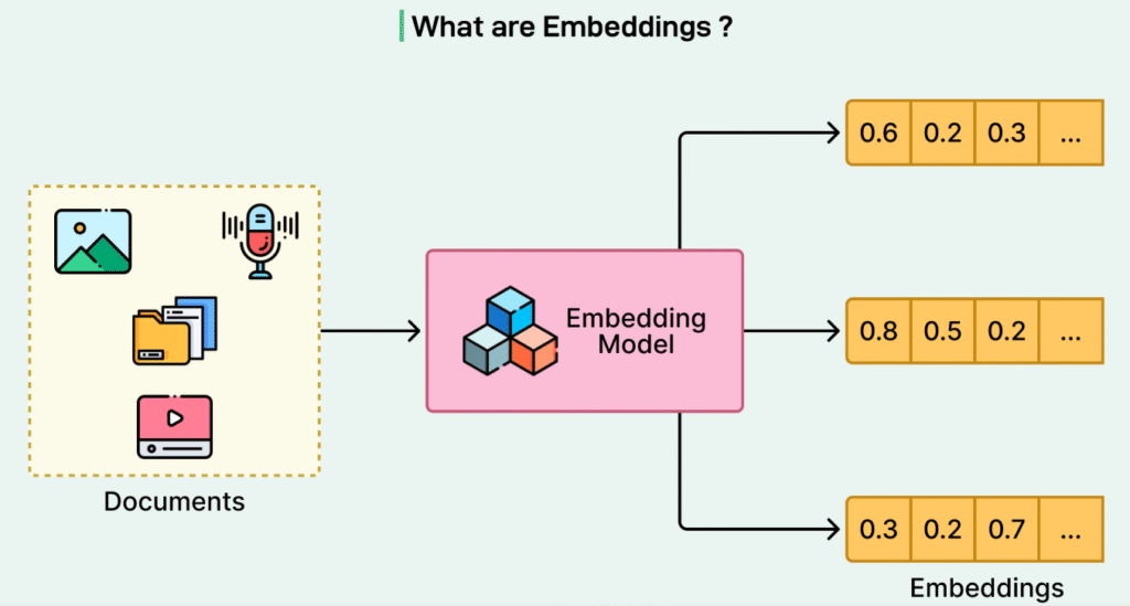 The foundational concept behind multimodal LLMs is the idea of a shared embedding space. Regardless of whether the input is text, an image, or audio, each modality is ultimately converted into a vector representation (embedding) within the same high-dimensional space.