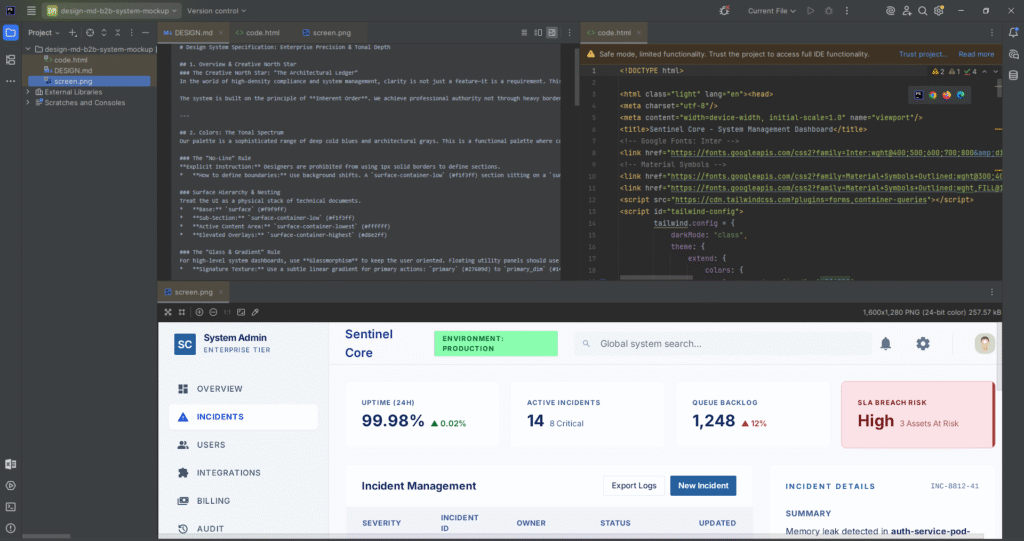 - Solving B2B “Mass Screen Production”: Internal Enterprise solutions often consist of dozens of structurally similar CRUD / Settings screens. Once 1 sturdy DESIGN.md config is completed, Product Managers themselves can prompt-build auxiliary screens with zero fear of Style inconsistencies.
