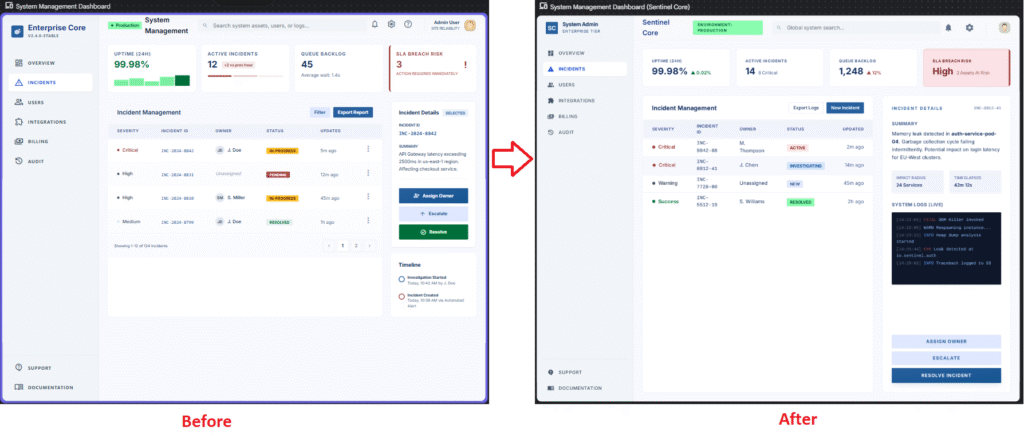 - Creative New Use Case (B2B Dashboard): Instead of re-using the self-intro website example from the original post, I will act as a Product Manager/Designer to design a highly specific enterprise B2B System Management screen.