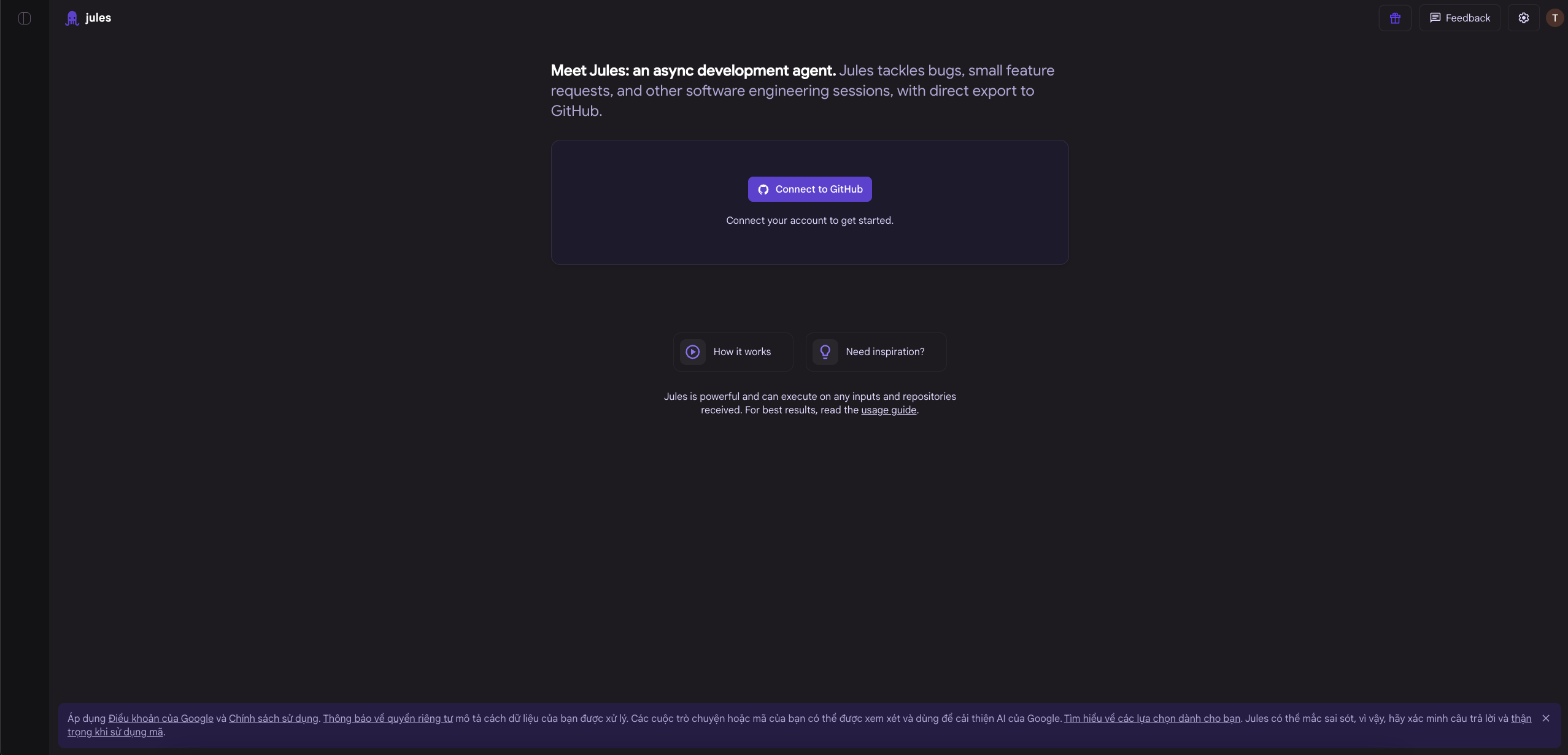 - Connect GitHub: Visit jules.google, select your repository and branch