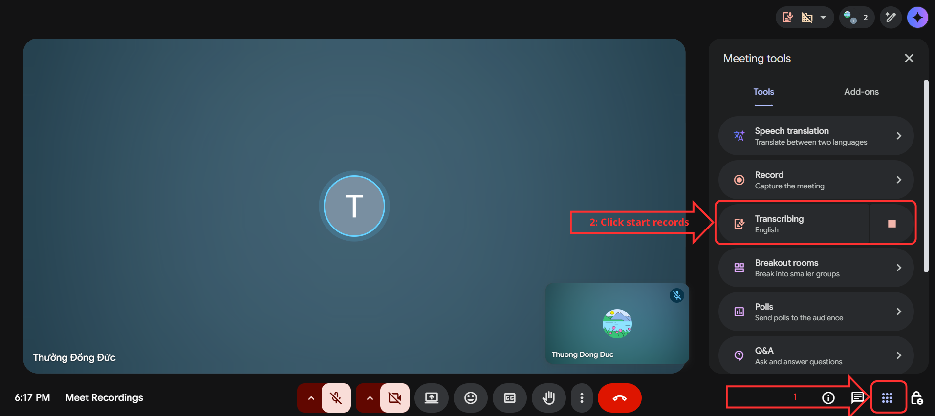 Evidence 1: Starting Transcription (In-meeting UI evidence)