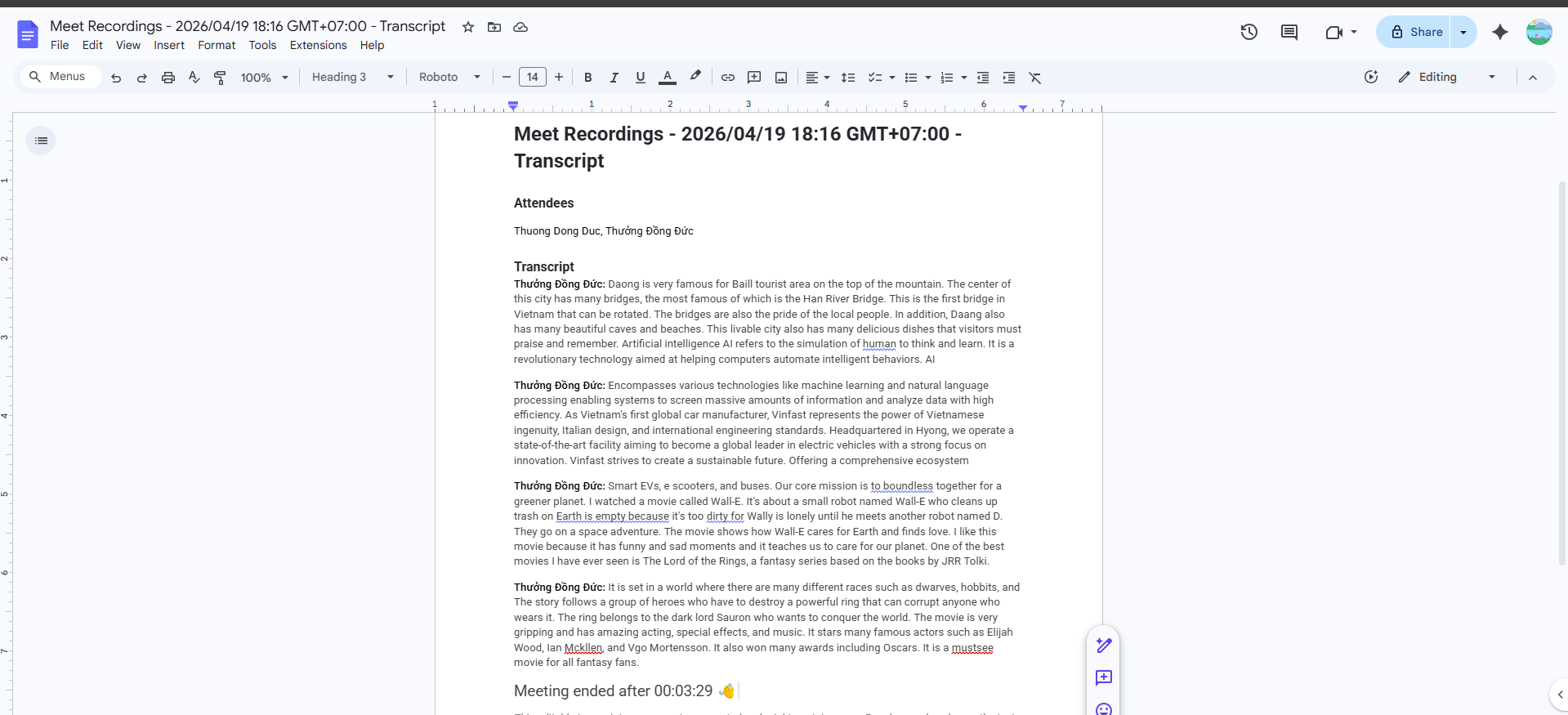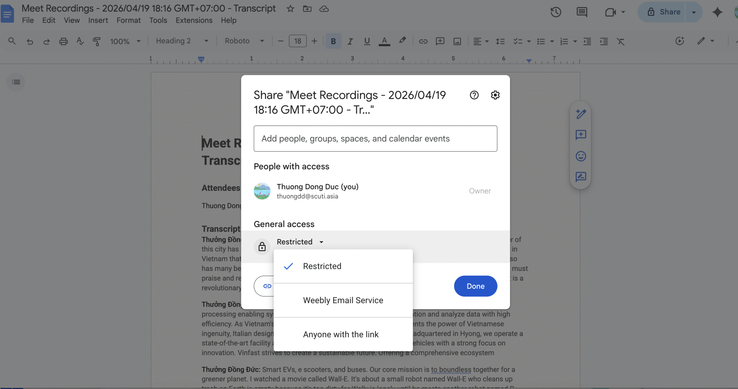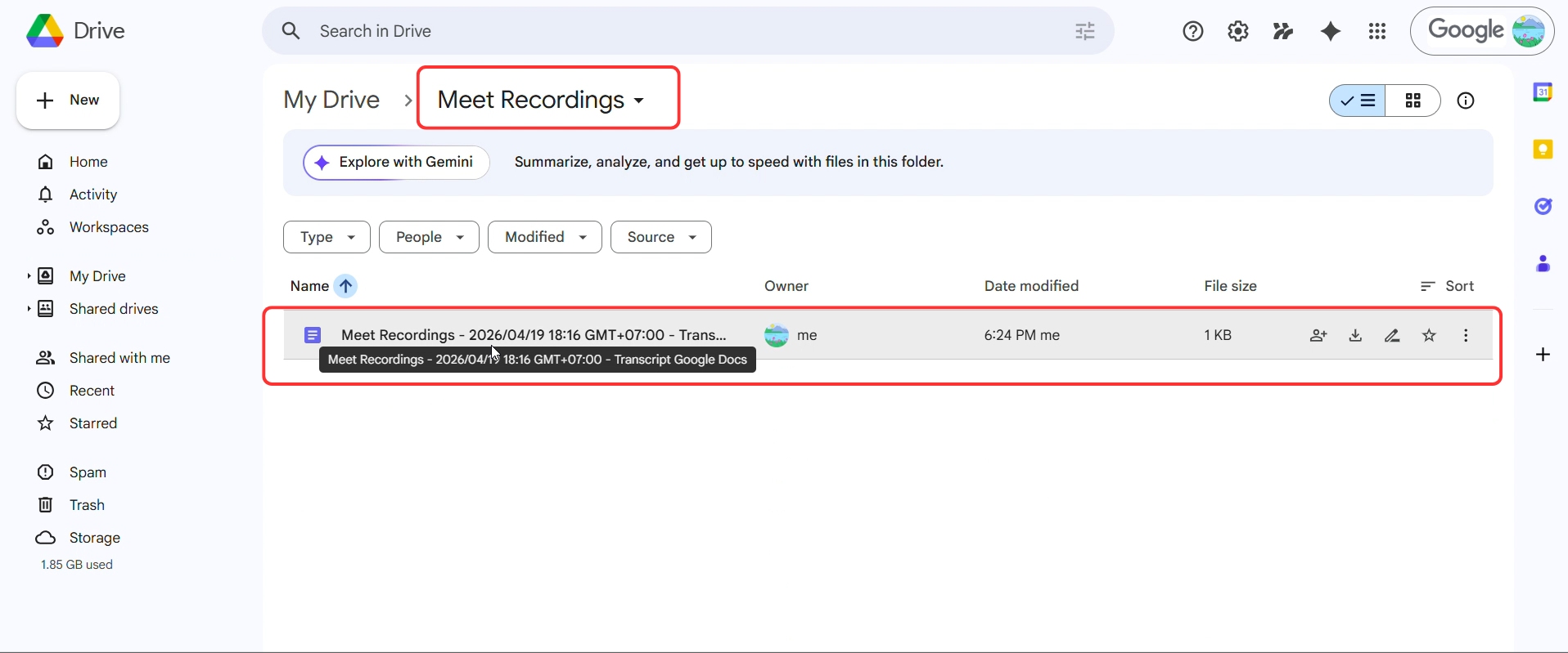 Evidence 2: Transcript file exists in Google Drive after the meeting
