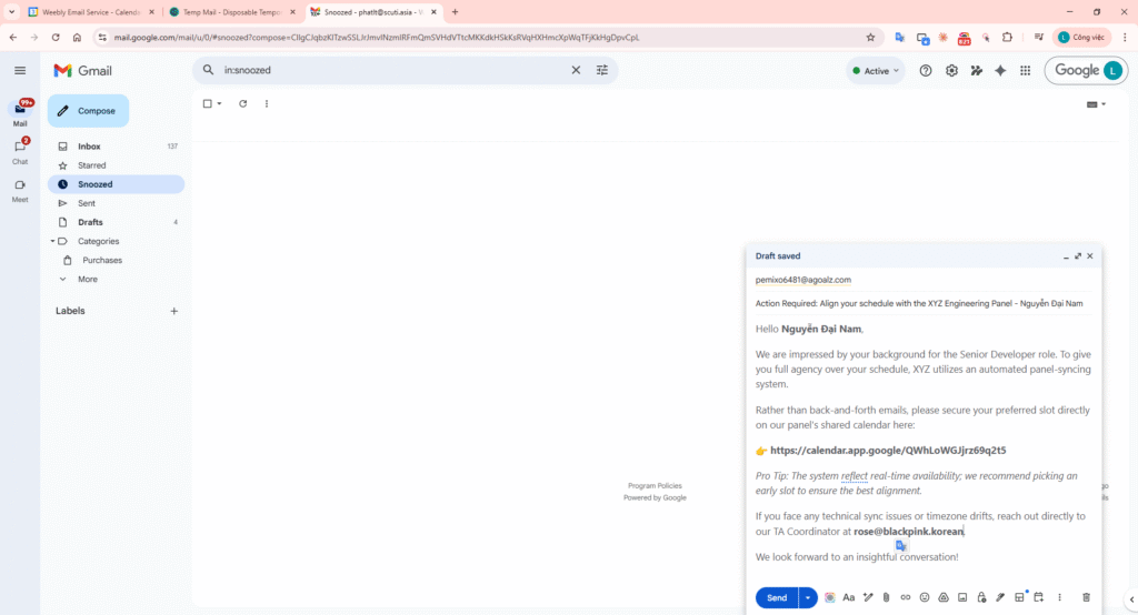 Open Gmail, use the template below, and paste your booking link to send to the candidate.