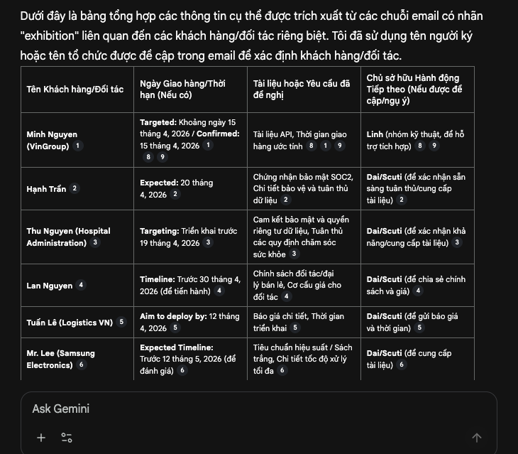 - Gemini nói: “Khách hàng yêu cầu báo giá trước thứ Sáu.”
